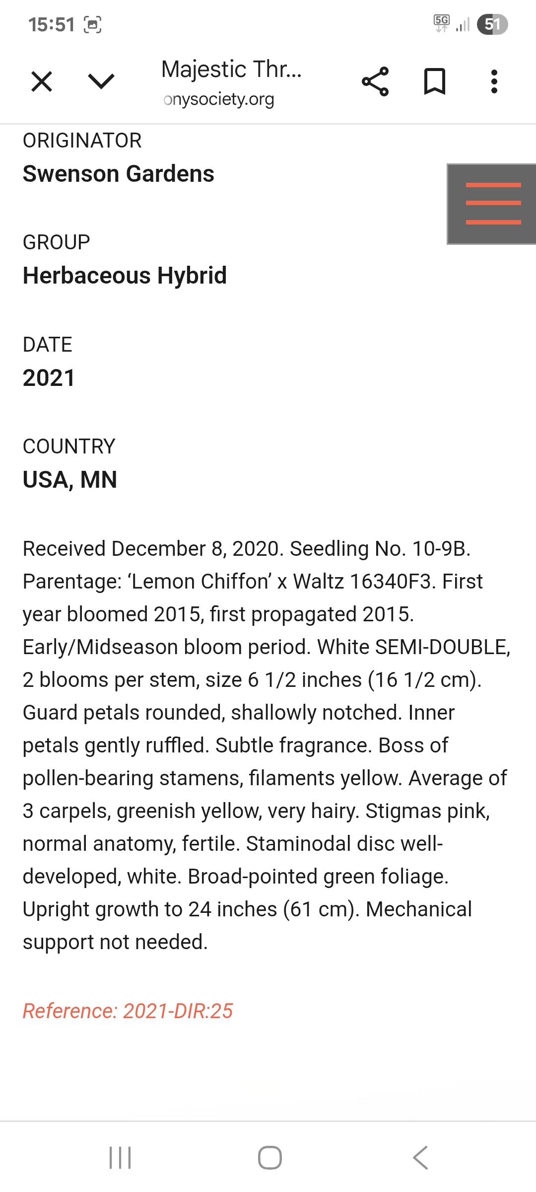 Veislė registruota 2021 m. Swenson Gardens USA.